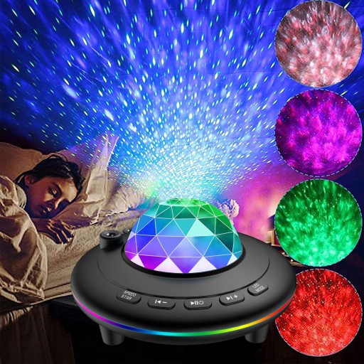 Проектор працює абсолютно безшумно навіть після виконання різних функцій. Це означає, що ваша дитина зможе повністю зосередитися на казкових візерунках, зображених на стелі та стінах, і спокійно заснути. Це ідеальне рішення для людей, які хочуть використовувати оригінальні світлові ефекти, зберігаючи тишу.