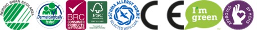 Сертифікати: Nordic Swan EcoLabel, Astma Allergy, FSC, BRC, знак CE