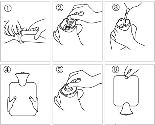 Безпечний і простий у використанні: широкий отвір запобігає опіку при наповненні водою, а наливати воду в грілку зручніше і безпечніше. Примітка: наповніть його лише на дві третини водою з температурою 80 градусів.