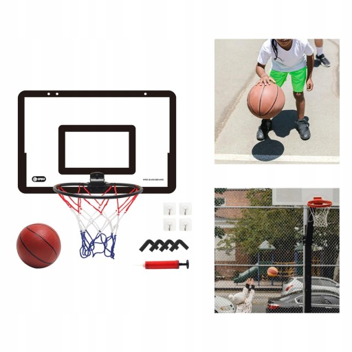 Цей набір включає 1x баскетбольні щити, 1x насос, 1x баскетбольну сітку, 1x баскетбольний м'яч, 4x піну EVA, 4x
