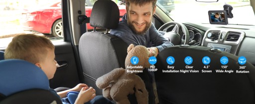 - Дисплей 4.3" 1080P - дозволяє чітко бачити кожен рух дитини на задньому сидінні.