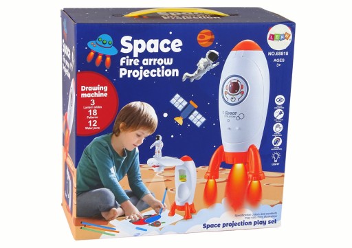 Космічний проектор у формі космічної ракети - це незвичайна іграшка, яка перенесе дітей у захоплюючий світ космосу. Дизайн має розміри 22 см x 11 см x 11 см і білий з помаранчевими елементами, що надає йому футуристичного вигляду.