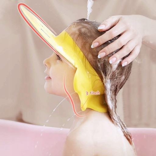 Передній край шириною 26 см захищає очі від бризок і має ширину 9 см. Дитячий душ із чудовим захистом від сухості допомагає захистити ваші вуха від води та піни шампуню під час миття голови, а також залишає ваше обличчя сухим. Це дуже ефективно для маленьких дітей, які турбуються про миття голови. Зручна та ефективна шапочка для плавання, яку можна обережно затягнути, щоб вона відповідала голові учнів початкової школи