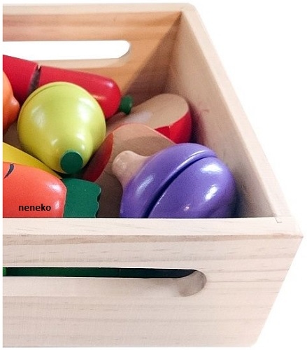 ДЕРЕВ'ЯНІ ОВОЧІ ТА ФРУКТИ ДЛЯ НАРІЗАННЯ В ЯЩИКУ + дошка + безпечний ніж