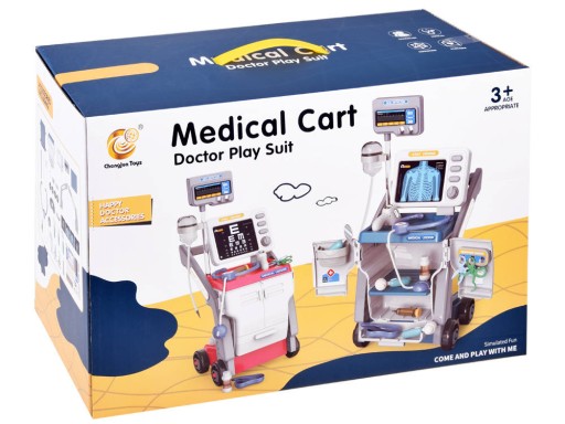 Лікарський візок з аксесуарами для маленького лікаря. чудове обладнання для дітей, щоб грати в лікаря. Зручний візок містить усі необхідні аксесуари.