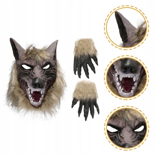 Хочете особливі маски для вечірок? Стаття буде відповідати вашим вимогам. Це маска з головою вовка та рукавички на Хелловін. Цей продукт виготовлено з преміального матеріалу, його легко носити та наносити. Унікальний та інноваційний дизайн зробить його популярним та практичним. Ідеально підходить для декорацій на Хелловін, виступів, косплеїв та інших випадків.