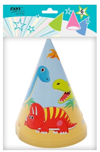 ПАПЕРОВІ ШАПКИ НА ДЕНЬ НАРОДЖЕННЯ ДИНОЗАВРИКА 6 ШТ