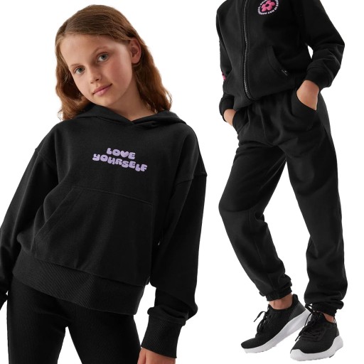 СПОРТИВНИЙ КОСТЮМ ДІВЧАЧИЙ 4F ЮНІОРСЬКИЙ СПОРТИВНИЙ КОМПЛЕКТ СВІТШОТ ТА ШТАНИ БАВОВНА