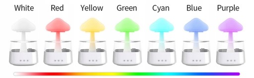 Зволожувач повітря та розсіювач ефірних олій 2 в 1 Ви все ще турбуєтеся про сухість шкіри, закладеність і сухий кашель? Зволожувач дощової хмари супроводжує вас у будь-який час року, як зволожувач повітря, так і ароматичний дифузор. Красивий крапельний дизайн хмарного зволожувача повітря 2 в 1 дозволяє розсіювачу ефірних масел прикрасити ваш дім або стіл, а також створює атмосферу ароматерапії. Дизайн дощової хмари Дощовий зволожувач створено з унікальним і стильним дизайном, схожим на дощову хмару, доповнений дизайном дощової краплі. Його елегантний і сучасний дизайн додає характеру кімнаті, роблячи його ідеальним доповненням до будь-якого дому чи офісу. 7 змін кольорів Дощовий зволожувач повітря Cuddly Cloud став суцільним із 7 світлодіодними лампами, що змінюють колір. Ви можете увімкнути його та утримувати кнопку, щоб налаштувати дихальне світло, або завжди вмикати його. Довгий середній кабель живлення більше 3 секунд від підключення/пристрою. Система швидкого налаштування машини для зливу води або розпалювання. Механізм приводу з правого боку дозволяє використовувати кількість крапель дощу та розбризкувану воду Розсіювання та зволоження повітря Наш дифузор дощової хмари допомагає злегка зволожити сухе повітря та не додає занадто багато вологи в повітря. Вода, що тече, може додати в навколишнє середовище деякі негативні іони, які будуть працювати безшумно і не заважатимуть спати вам і вашій дитині. Додайте кілька крапель ваших улюблених ефірних масел (НЕ ПОСТАЧАЮТЬСЯ) для розслаблюючого аромату, ви насолодитеся солодким сном зі своїм коханим. Безпечна ароматерапія Ви все ще переживаєте, що дешева ароматерапія може зашкодити вашим дітям? Дощовий нічний розсіювач дуже безпечний, що дозволяє використовувати його без будь-яких турбот. Ви можете ввімкнути цей дощовий зволожувач повітря в спальні, дитячій кімнаті, меблях, кімнатних меблях, тумбочці та приладі. Вважається, що конструкції не можна створювати над рівнем води.