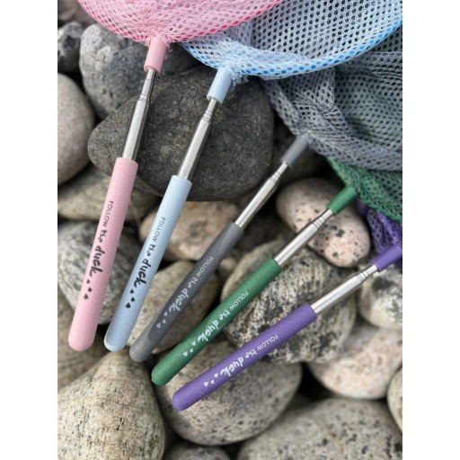 Важливим аксесуаром для розваг на свіжому повітрі є телескопічна сітка FOLLOW the duck, яка ідеально підходить для лову риби, погоні за метеликами або виловлювання скарбів з басейну.