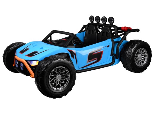 Buggy Racing, двомісний акумуляторний автомобіль, є пропозицією для кожного водія цього сезону. Спортивний баггі - це двомісний транспортний засіб зі зручним сидінням і зручною підвіскою. Привід 2 двигунів, передні та задні амортизатори, пластикові колеса дозволяють комфортно їздити по бездоріжжю. Двомісний позашляховик з двигуном 2 (2 x 24V 200W) + акумулятор (1 x 24V/7Ah) + пульт дистанційного керування для батьків 2,4 HGz.