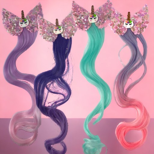 Набір з металевих і красиво мерехтливих крил + райдужна і кольорова спідниця-пачка + мерехтлива пов'язка з мерехтливим металевим рогом + браслет з єдинорогом + шпилька з пасмом веселкового волосся + кришталеві наклейки для обличчя.