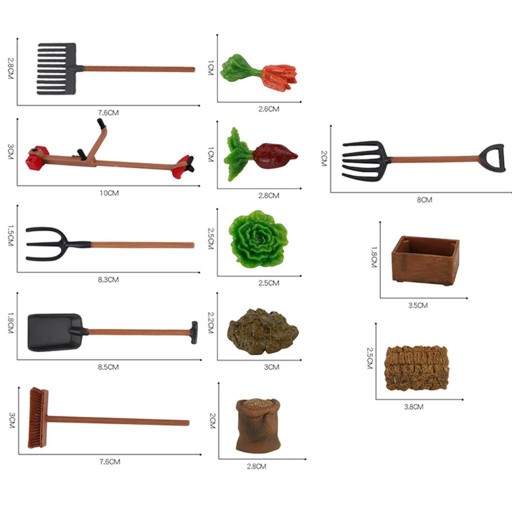 Цей набір із 13 предметів включає кельму, виделку, абат, пензлик, зелені овочі, капусту, моркву, корм тощо.