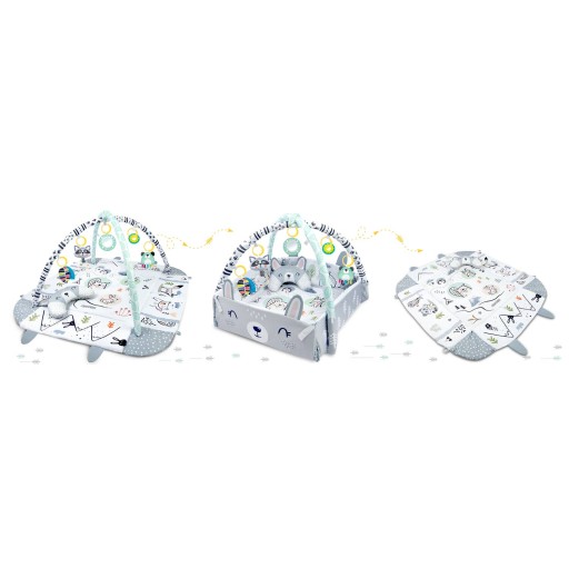 - У набір входить: килимок, 4 стінки, 2 упаковки, 6 багатофункціональних іграшок, подушка.