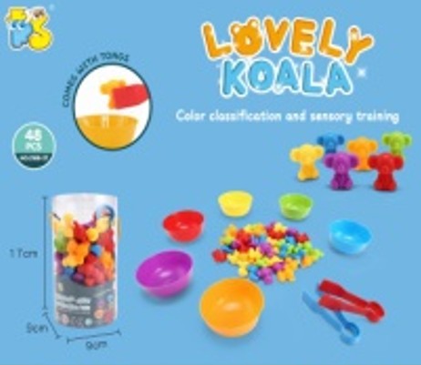 Гра передбачає виконання точних рухів і зосередження на підборі кольорів. Спочатку ми висипаємо всі фігурки коал на стіл, а потім розставляємо 6 чашок різних кольорів, створюючи місце призначення для наших фігурок. Дитина отримує спеціальний захват, за допомогою якого вона зможе хапати і переміщати тварин у відповідні чашки. Мета гри — помістити кожну коалу в чашку однакового кольору. Це вимагає від дитини зосередженості, координації рухів і навичок розпізнавання кольорів.