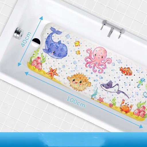 Наш килимок для ванної має розміри 100 х 40 см, і його вистачить на всю ванну кімнату. Якщо у вас кілька дітей, маленького килимка для ванної буде недостатньо. Цей килимок для ванної кімнати дозволяє кільком дітям купатися разом, заощаджуючи більше часу. Більше дітей, веселіше.