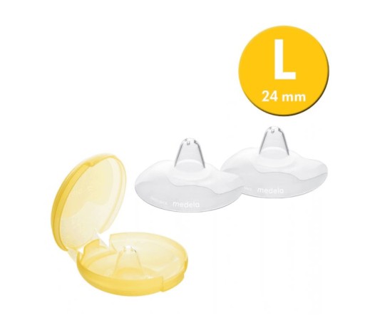 Medela - щитки для сосків Medela Contact - це контактні щитки, які захищають ваші соски під час годування та допомагають дитині прихопитися до грудей. Щитки міцні, зручні, зручні і значно полегшують годування дитини, незважаючи на хворобливі, плоскі або втягнуті соски. Вони також корисні у випадках надмірного витоку молока. Вони полегшують дитині правильний захоплення грудей, а їх більша та надійніша поверхня захоплення усуває труднощі з захопленням соска дитиною. Завдяки тому, що вони мають спеціально розроблену форму, вони забезпечують широкий контакт зі шкірою і максимально можливий контакт з малюком, чий ніс безпосередньо стикається з грудьми матері. Вони ультратонкі, що важливо для підтримки лактації на належному рівні. Після змочування водою чохол практично прилипає до грудей і, головне, не спадає. Накладки виготовлені повністю з матеріалу, що не містить BPA. Без смаку і запаху. Доступний у трьох розмірах.