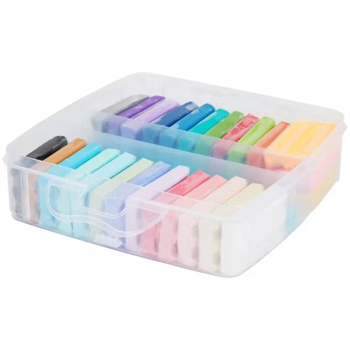 Весь набір пластилінів і шпателів разом упакований в міцний пластиковий закритий футляр, який можна подарувати.