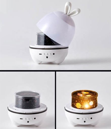 Світло падає на стелю кімнати, створюючи реалістичне зоряне нічне небо, створюючи розслаблюючу та комфортну атмосферу та викликаючи бажання прогулятися серед зірок. Це стимулює дитячу уяву та допомагає їм швидко та спокійно заснути.
