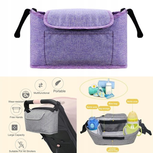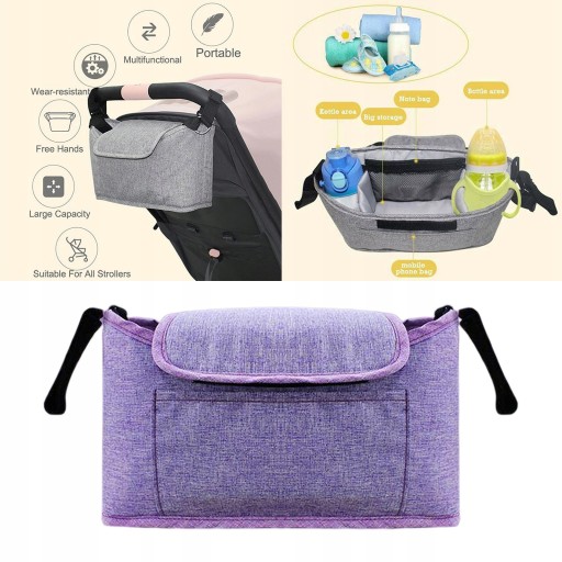 Велика місткість, з 2 тримачами для пляшечок для дитячих пляшечок або чашок, сітчасті кишені для дитячих паперових рушників, великий простір для пелюшок, іграшок, їжі, бічна кишеня для мобільного телефону