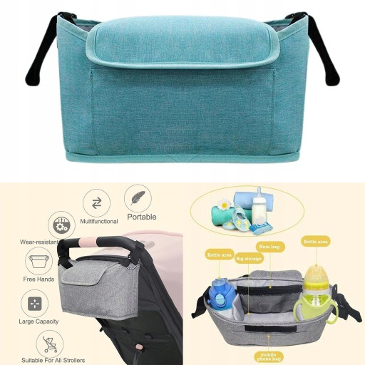 Велика місткість, з 2 тримачами для пляшечок для дитячих пляшечок або чашок, сітчасті кишені для дитячих паперових рушників, великий простір для пелюшок, іграшок, їжі, бічна кишеня для мобільного телефону