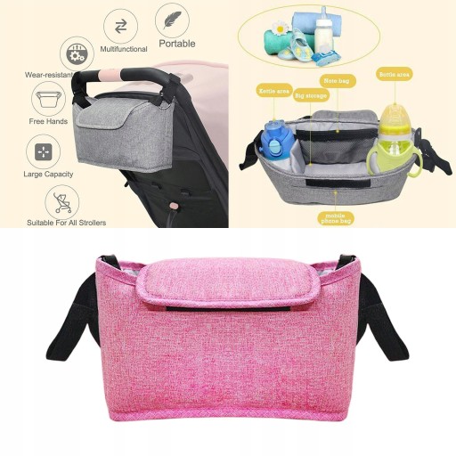 Велика місткість, з 2 тримачами для пляшечок для дитячих пляшечок або чашок, сітчасті кишені для дитячих паперових рушників, великий простір для пелюшок, іграшок, їжі, бічна кишеня для мобільного телефону