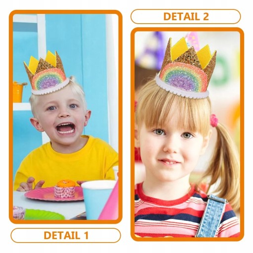 Розроблений у формі витонченої корони, головний убір стане ідеальним головним убором для дитячого дня народження, який додасть краси зовнішньому вигляду вашого малюка. Цю дитячу шапку на день народження можна використовувати як ідеальний реквізит для фотографій або костюмів!