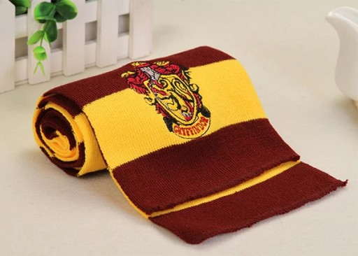- Шарфи з золотими та бордовими смугами з гербом школи Грифіндор
