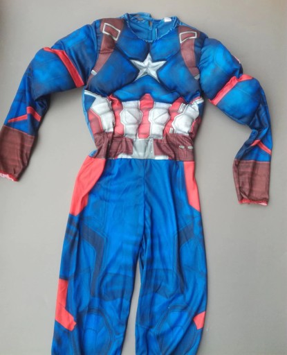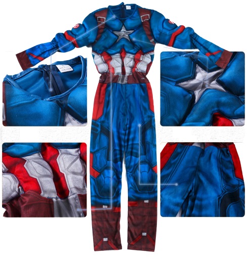 Цілісний костюм Капітана Америки синього кольору з білими та червоними елементами. Добре виготовлена, трохи еластична, застібається на блискавку. Завдяки нашій пропозиції кожен фанат перевтілиться в улюбленого героя. Цікавий костюм дозволить вам помандрувати у світ коміксів, які допоможуть згадати дитинство.