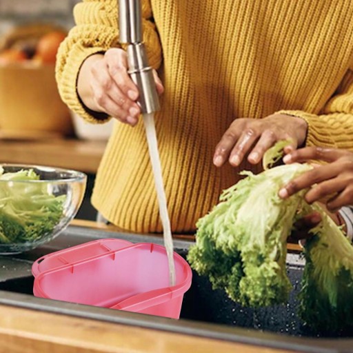 Застосування: Контейнер призначений для миття та зберігання різних видів овочів, фруктів та інших кухонних прибамбасів, підтримки порядку на стільниці.