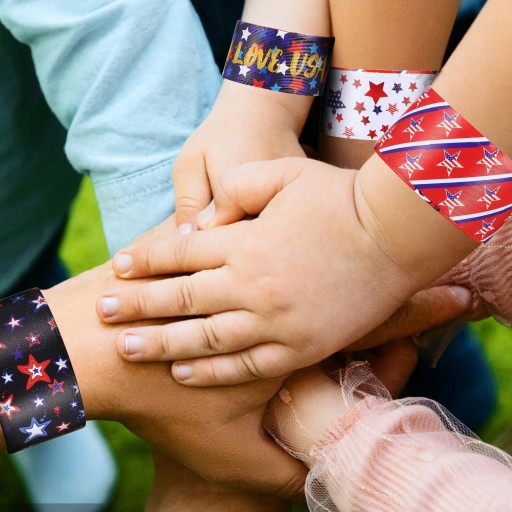 Цей продукт являє собою веселий набір плескаючих браслетів до Дня Незалежності, виготовлений з високоякісного матеріалу, надійний і безпечний у використанні. Вишуканий унікальний набір браслетів з класичним принтом. чудово підходить для вечірок, свят і карнавалів тощо.