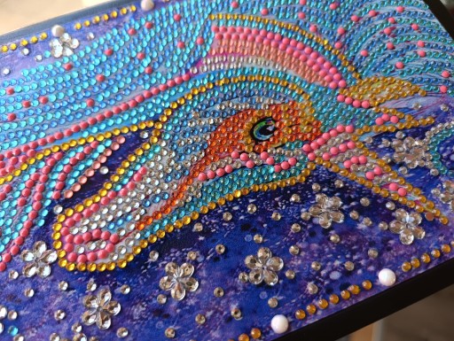 Створіть власну обкладинку щоденника в техніці алмазної вишивки. Покрийте всю передню кришку блискучими кристалами яскравих кольорів!