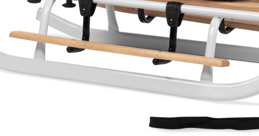 Санки виготовлені польським виробником з товстої сталевої труби та міцного сидіння з букових дощок. Наші санки мають широку стійку, тому їх важко перекинути. Спинка була посилена для безпеки дитини, що відрізняє наші санки від інших, представлених на ринку. На відміну від дешевих китайських санок, труба, з якої зроблені санки, товста і міцна і прослужить довше тонкої труби, яка використовується в китайських екземплярах.