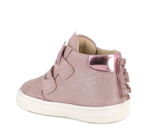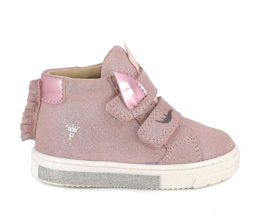 Туфлі для дівчинки з натуральної оксамитової шкіри пудрово-рожевого кольору з блискучими частинками. Мотив єдинорога додає дівочого шарму
