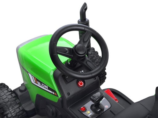 Завдяки 2 двигунам транспортний засіб легко справляється з пагорбами, нерівностями або травою. Трактор має гальмо, яке спрацьовує при знятті ноги з педалі газу. Швидкість автомобіля активується за допомогою пульта дистанційного керування 2,4 ГГц, за допомогою якого батьки можуть повністю контролювати автомобіль. Рухом вперед і назад керує перемикач вперед, зупинка і назад.