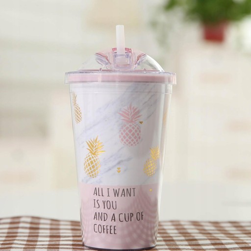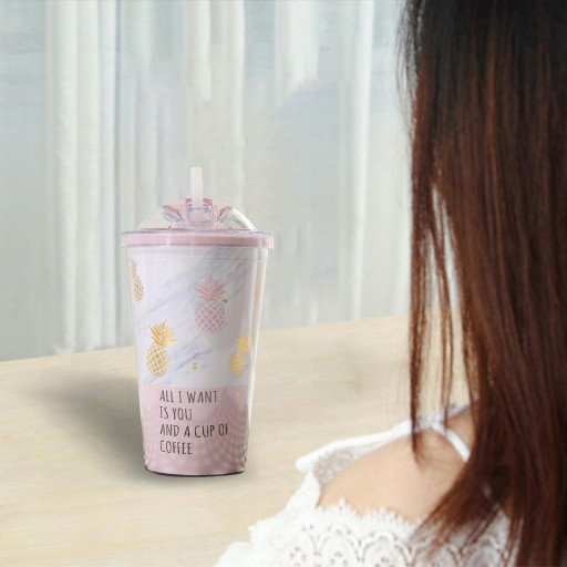 Солом'яна чашка: пляшка для води з соломинкою та кришкою, розсувна кришка, ви можете пити будь-коли та будь-де, не хвилюйтеся про витік води.