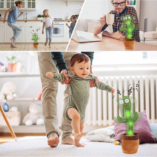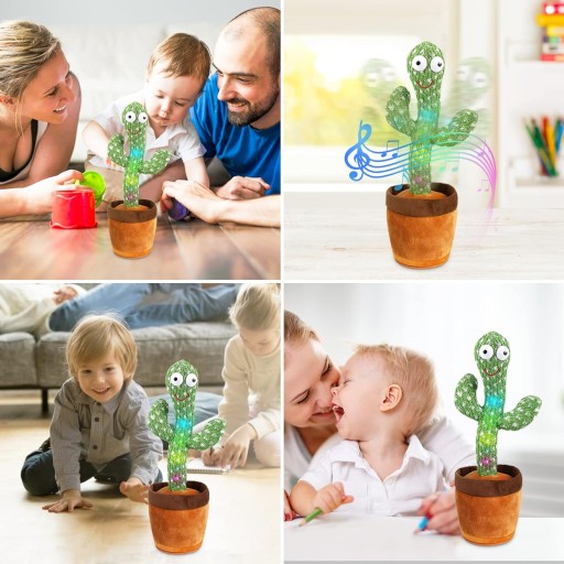 Танцюючий кактус: електричний танцюючий кактус може співати 120 популярних пісень. Світлодіодний ліхтар може змусити розмовляючого кактуса повертати своє тіло світлом, що дуже привабливо. Дитячі іграшки «Кактус» повторюють те, що ви сказали смішним голосом.