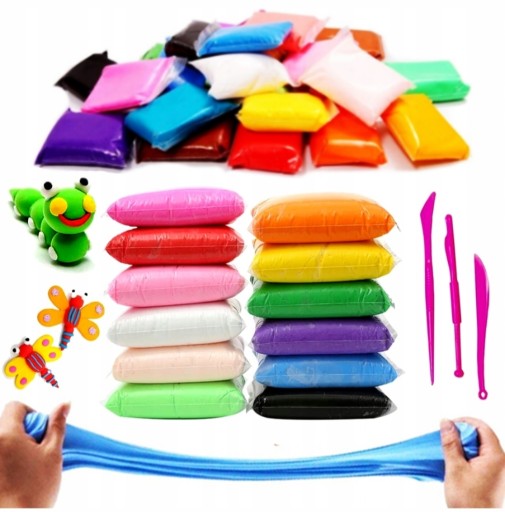 Повний набір: містить 12 кольорів Super Clay і 3 різні лопатки для моделювання.
