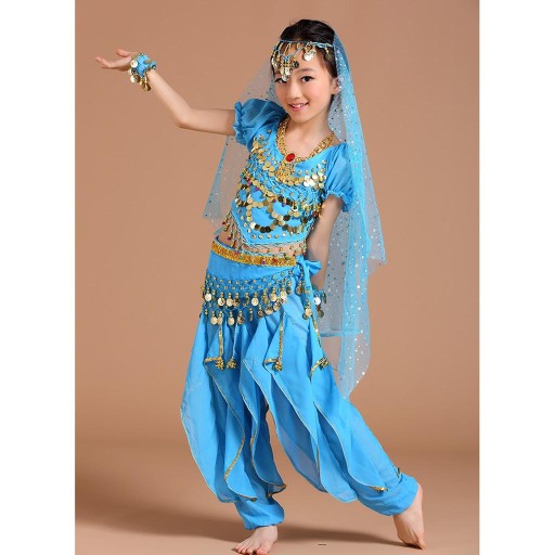 Комплект костюмів для танцю живота, включаючи топ, штани-шаровари, шарф на стегнах і пару браслетів
