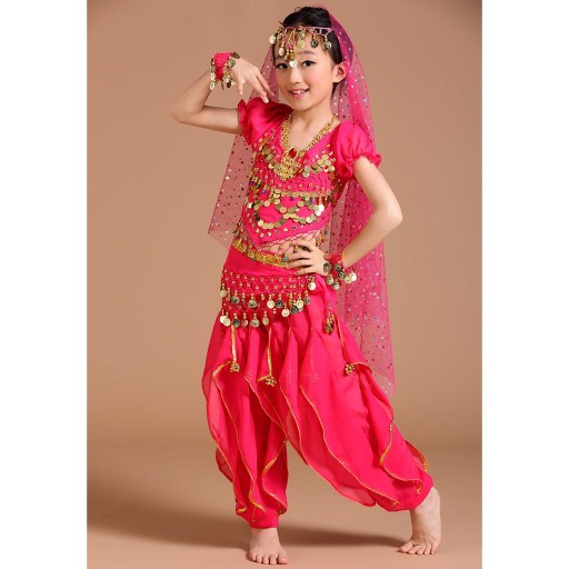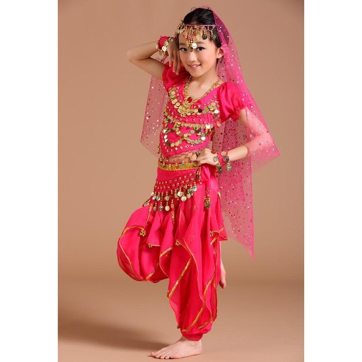 Комплект костюмів для танцю живота, включаючи топ, штани-шаровари, шарф на стегнах і пару браслетів