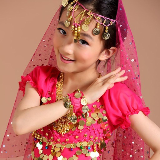 Дитячий костюм для танцю живота з пензликом і китицями, набір шарфів на бедрах M Rose