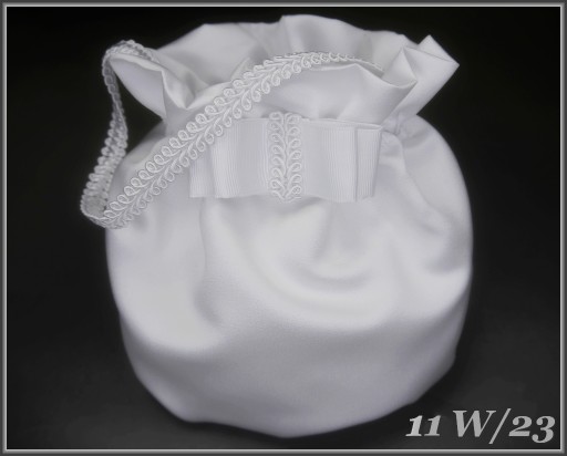 Набір для причастя: рукавички, шапочка для причастя, сумочка. Сумка має жорстку вставку і виконана з трьох шарів тканини: першокласного атласу, жорсткого тюлю і тканини камбел. Всі елементи набору прикрашені бантиком з шовку з шовковою тасьмою.У вартість не входить свічка!