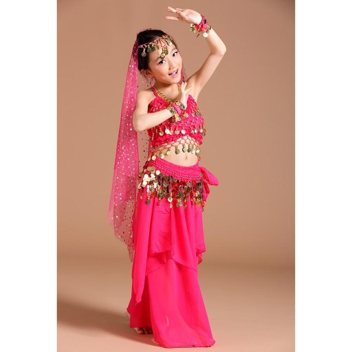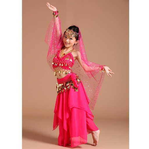 Комплект костюмів для танцю живота, включаючи бюстгальтер, довгу спідницю, шарф на стегнах і пару браслетів