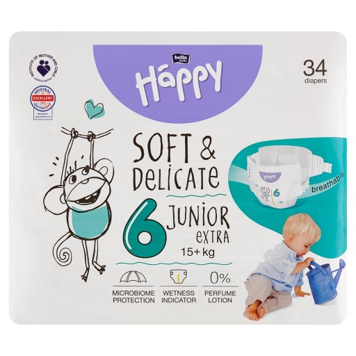 Дитячі підгузки HappyJunior Extra(6) рекомендовані для дітей вагою понад 15 кг. Виготовлені з матеріалів найвищої якості, вони ідеально прилягають до тіла дитини та забезпечують комфортне відчуття сухості. Розроблені з урахуванням потреб найчутливішої шкіри - вони не містять алергенів і мінімізують ризик попрілостей.