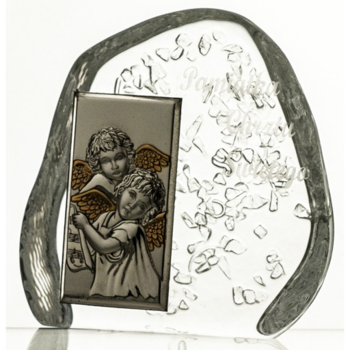 Кришталева кнопка для стрибка з високоякісного кришталевого скла з посрібленим зображенням ангелів і вигравіруваним написом: Пам'ять Святого Хрещення. Чудовий подарунок на Святе Хрещення.