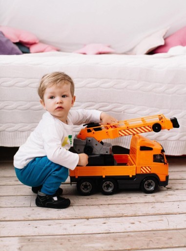 Це подарує хлопчикам масу задоволення та багато годин фантастичного задоволення. Транспортний засіб має підйомну, висувну та поворотну кранову стрілу. кран висувається до 70 см! Підйом і висування рукоятки і опускання гачка здійснюється за допомогою зручних ручок. Платформа з драбинами обертається на 360 градусів, борти автомобіля відкриті.