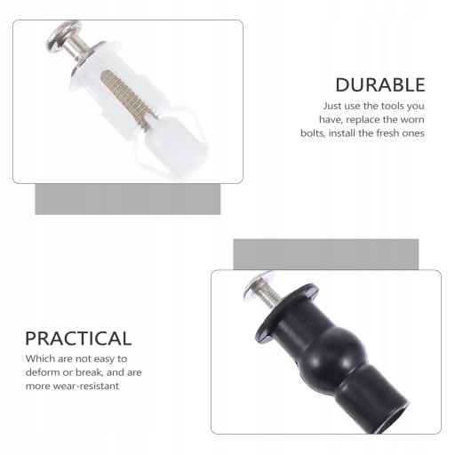 Гвинт виготовлений з гуми та нержавіючої сталі, не деформується, надійний у використанні. Його легко прикріпити та від’єднати. Містить достатньо, щоб замінити старі або пошкоджені. Універсальна фурнітура для кришки унітазу, зручна у використанні.