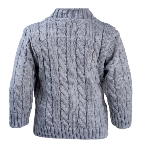 Сірий плетений светр з V-подібним вирізом, відкритий на гудзики, на хрещення хлопчика 62 - розмір 62
