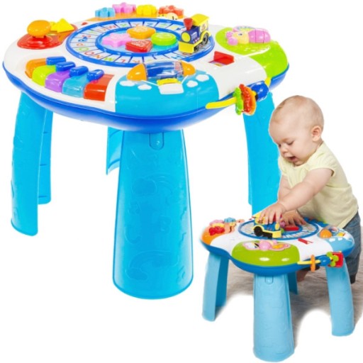 Активний стіл має великий вплив на загальний розвиток дитини, стимулюючи всі органи чуття малюка. Різноманітність численних мелодій позитивно впливає на розвиток слуху, а величезна кількість атракціонів для захоплення, повороту та дотику впливає на розвиток спритності пальців і рук, а також на координацію очей і рук. Це ідеальний центр розваг як для хлопчиків, так і для дівчаток.