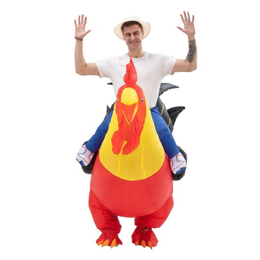 Розмір і колір надувний костюм у формі червоного півня - це модель plus size, яка підходить для людей зростом від 150 до 190 см, червоний півень, модний і унікальний.